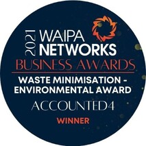 Accounted4 were excited to have been a finalist in 3 categories and the winner of the Waste Minimisation Environmental Award at the 2021 Waipa Networks Business Awards.