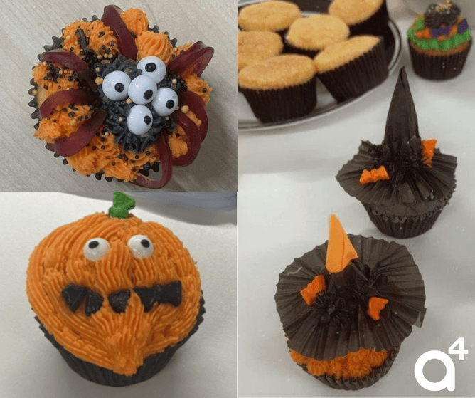 With our resident master baker, Sara, being part of the social club, it was only natural for her to suggest a cupcake decorating competition for Halloween! Thankfully she baked the cupcakes and judged, rather than showcasing her own exceptional decorating skills.. Congrats to Lisa in 1st place with the spider, Ann-Marie in 2nd with her witches hat and Samara in 3rd with her pumpkin.
