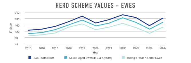 Similar to beef values, sheep values have risen strongly, on average a 38% increase, erasing the 2024 fall in values. Increased values are on the back of strong global demand, from the UK, EU and US, even though demand in China has been weak.