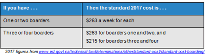 When you get income from boarders or homestays, your tax position depends on how many boarders you have, and how much you can charge, compared with the IRD’s standard-cost method. In other words: