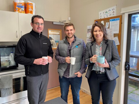 Here he is enjoying a cuppa with our Director, David Faville and our Business Manager, Chris Stevenson.