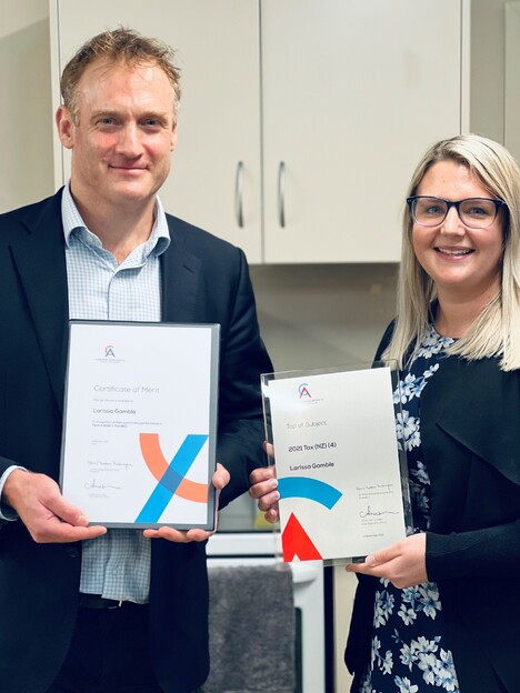 Congratulations Larissa! Larissa has been awarded the certificate of Merit and a special certificate for being the top candidate in NZ in the Term 4 2021 CA Tax Programme with a mark of 95%, what an achievement. We could not be more proud!