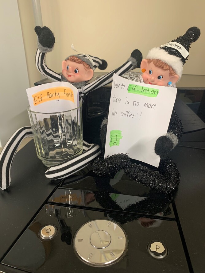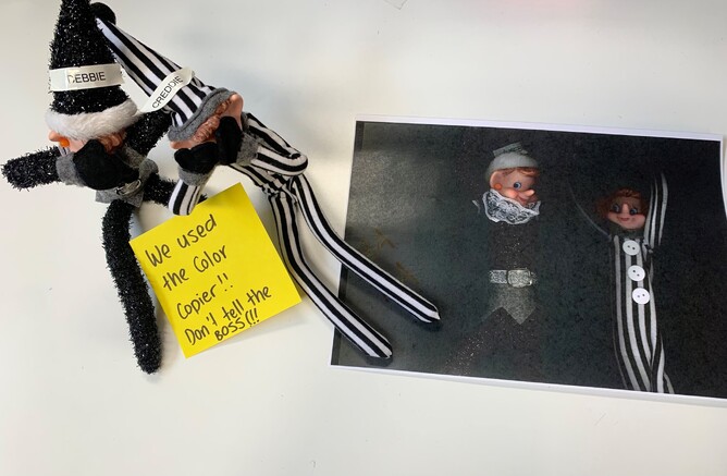 Our resident Christmas Elves, Debbie and Creddie, returned to the office to cause some mischief. Here is a peek at what they have been getting up to after hours.